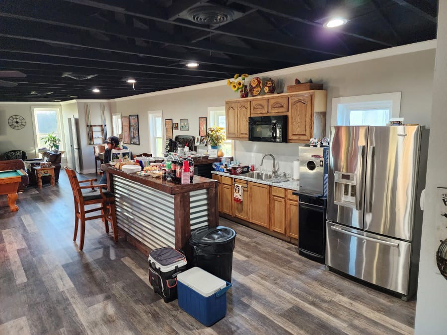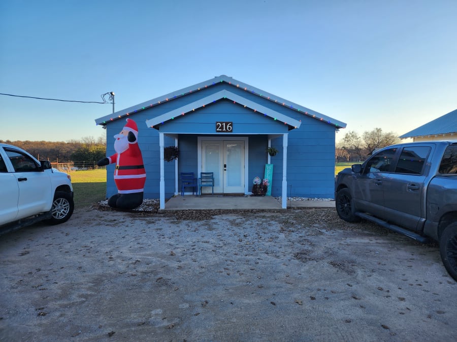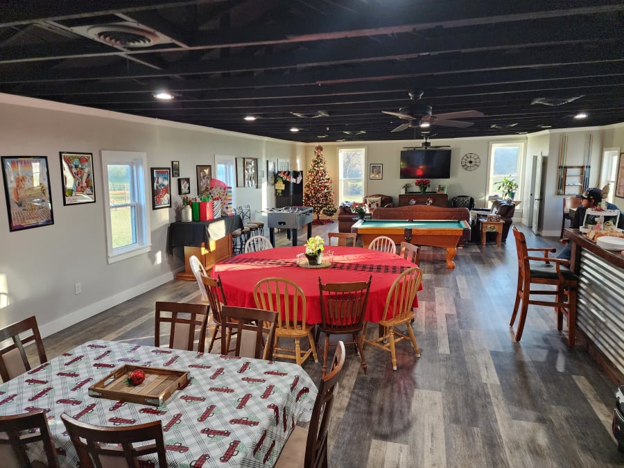 A great little place in Santo that can accommodate several people. Inside you'll find plenty to do for guests from playing pool, shuffleboard, foosball or even basketball. Or just sit in comfort and watch the big screen TV. A kitchenette with high bar and several large tables provide seating for multiple guests. Outside enjoy cornhole, and other outside games or sit by the firepit on a cool evening. We've delivered bounces and even played GellyBall here so lots of room for fun!