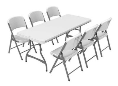 This is a folding white table that is perfect for outdoor events. We have plastic and metal tables and event furniture available, and the plain design and color scheme makes them suit all kinds of themes and decors. The lightweight design of this table means it is easy to move around, and setting it up takes just a few seconds.