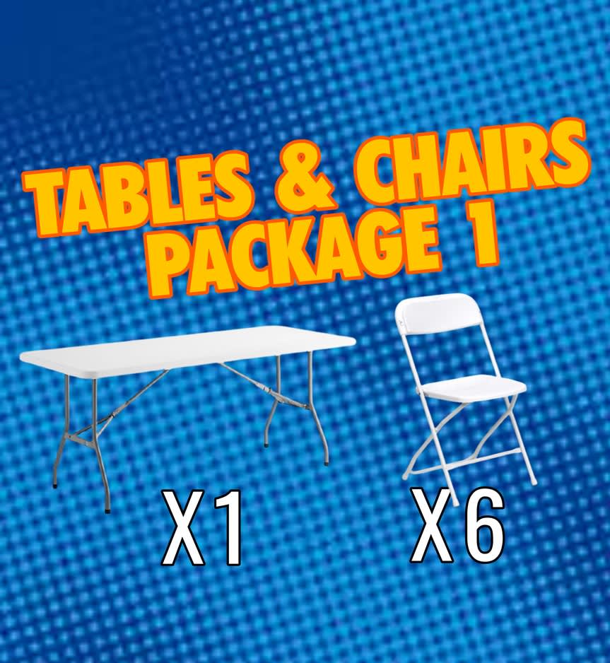 This package contains 1 - 6' folding table and 6 white folding chairs